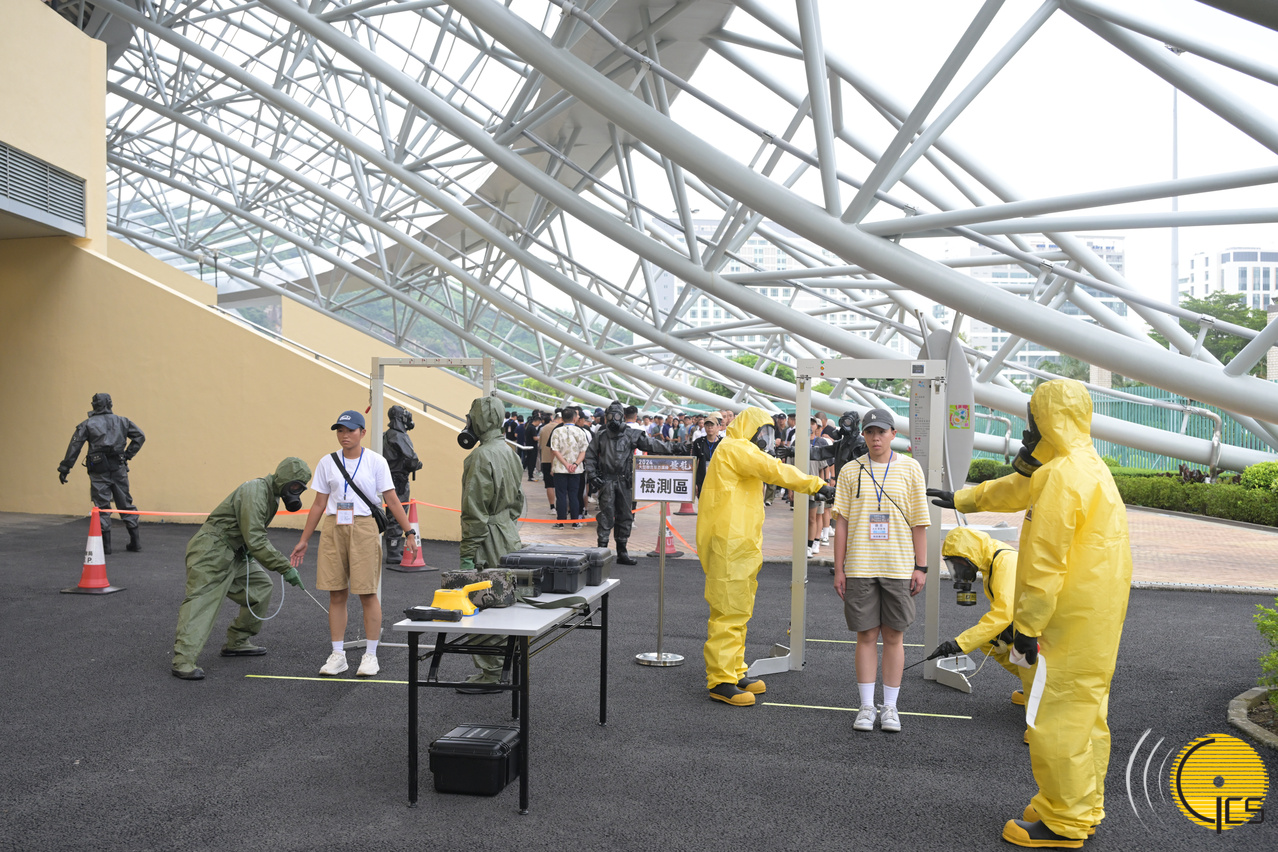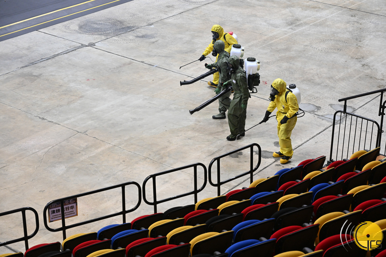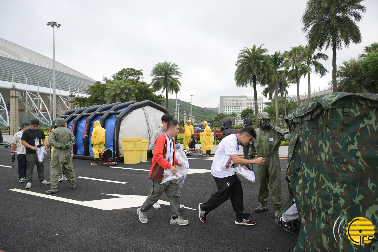 2024年大型联合反恐演练“盘龙” - 消防局及解放军驻澳部队人员对会场进行洗消。