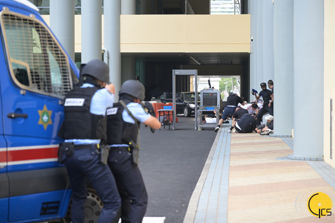 2024年大型联合反恐演练“盘龙” - 警察总局联同中国人民解放军驻澳门部队,并协调多个部门,在澳门东亚运动会体育馆进行代号“盘龙”的大型联合反恐演练,模拟有恐怖分子袭击及挟持观看大型演唱会的观众,跨部门迅速联合开展反恐救援行动。