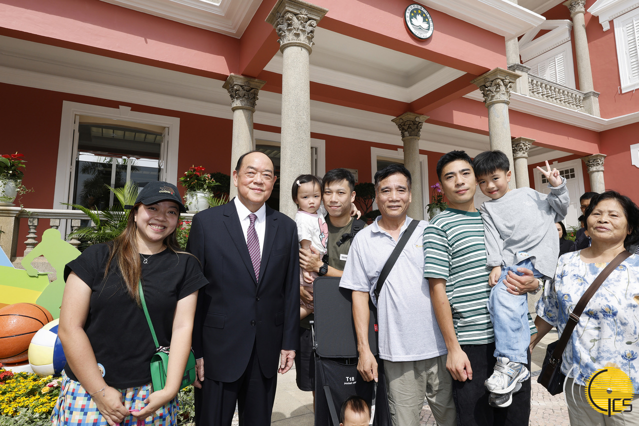 • 行政长官贺一诚与到访政府总部的家庭合影,共度开放日的欢乐时光。