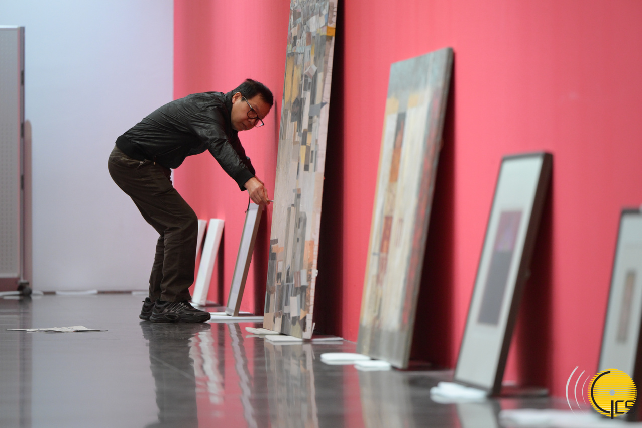 布展人员为展品进行排位,待策展人确定后,再进行安装及固定。