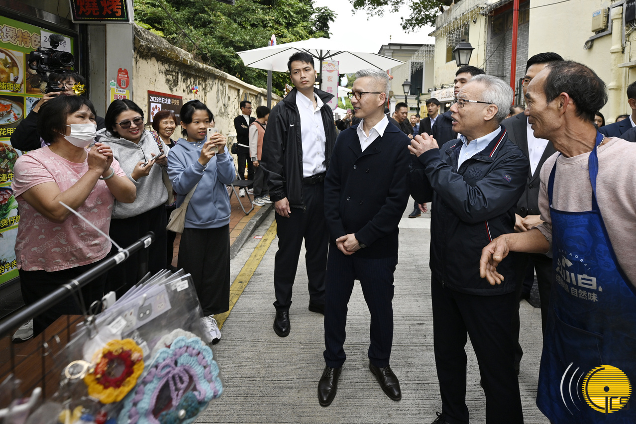行政长官岑浩辉视察关前街、果栏街、十月初五街、康公庙前地一带,实地瞭解节日期间的商户营运及市面人流情况。