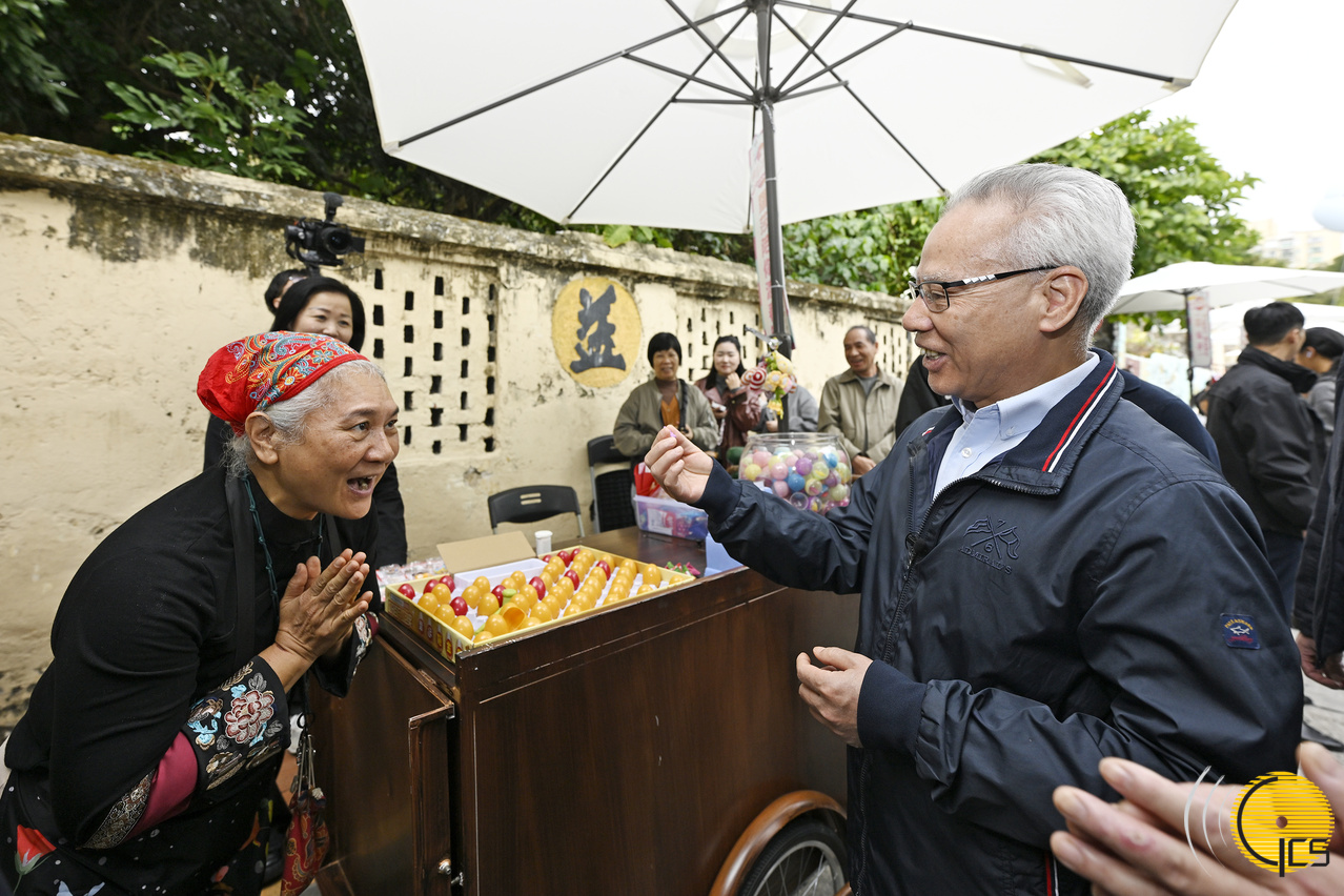 行政长官岑浩辉走访社区,沿途不时与途人、店主和店员互致新春祝福,气氛热闹和谐。
