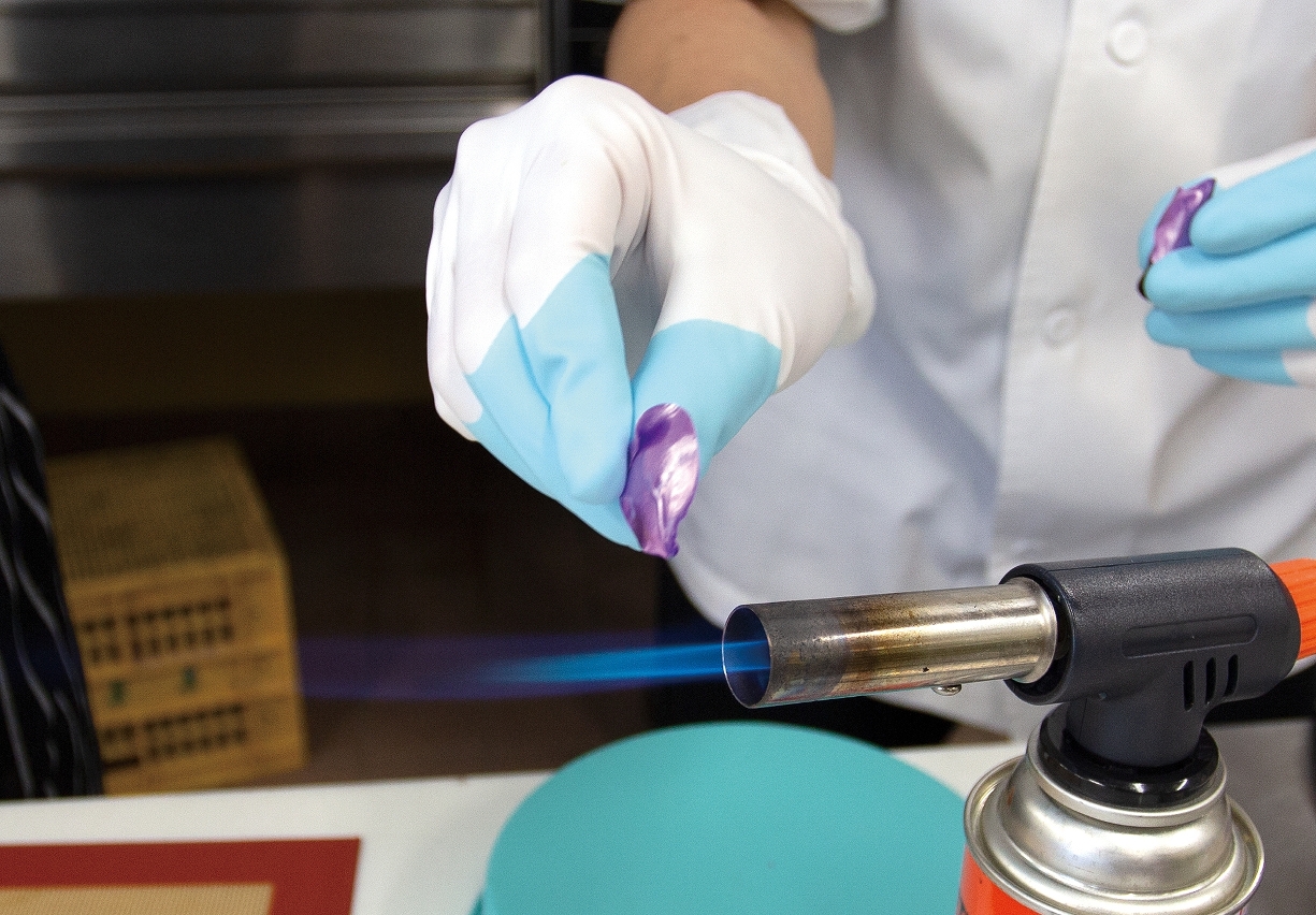 初学者在拉糖时,常会因为力度掌握不好,导致双手烫伤。因此,为避免双手受伤及防止手汗污染糖身,可带上特制的手套,以策万全。