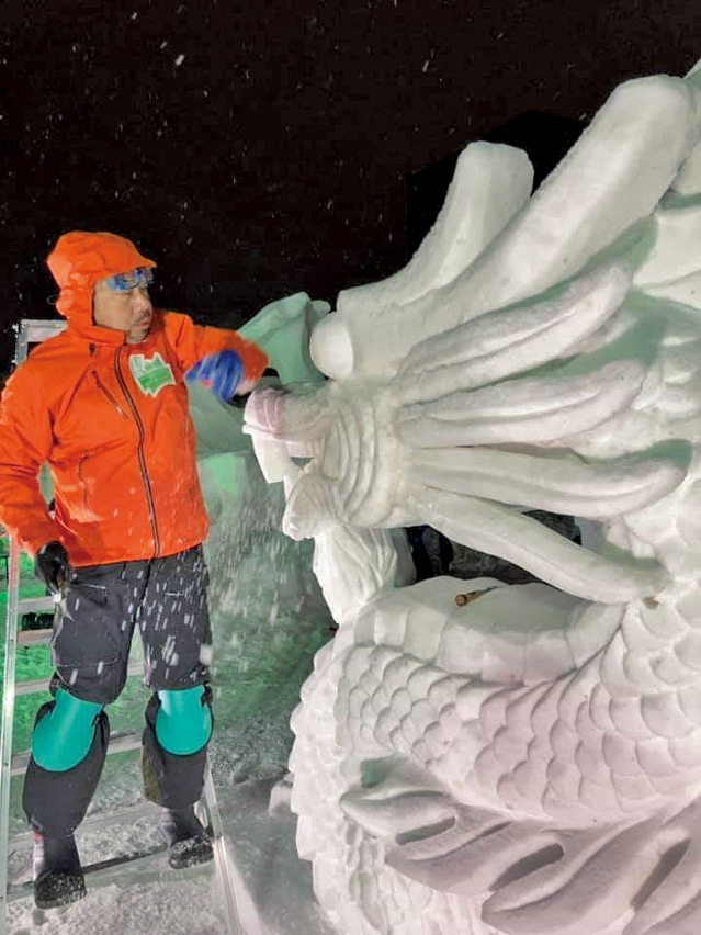 要创作出完美的雪雕作品,除了花心思设计,前期的准备工作亦不能马虎。阮锦鸿指出,每次比赛前,都会根据赛事要求及天气状况,才决定作品的类型。当中最难预测的是天气,亦是成败关键之一。「如果在比赛途中下大雪,就会遮盖作品的细节,必须重新雕刻。最麻烦的是太阳天,阳光的温度会使雪雕的内部融化,即使外表看似完好无缺,但其实一碰便会塌下来」。