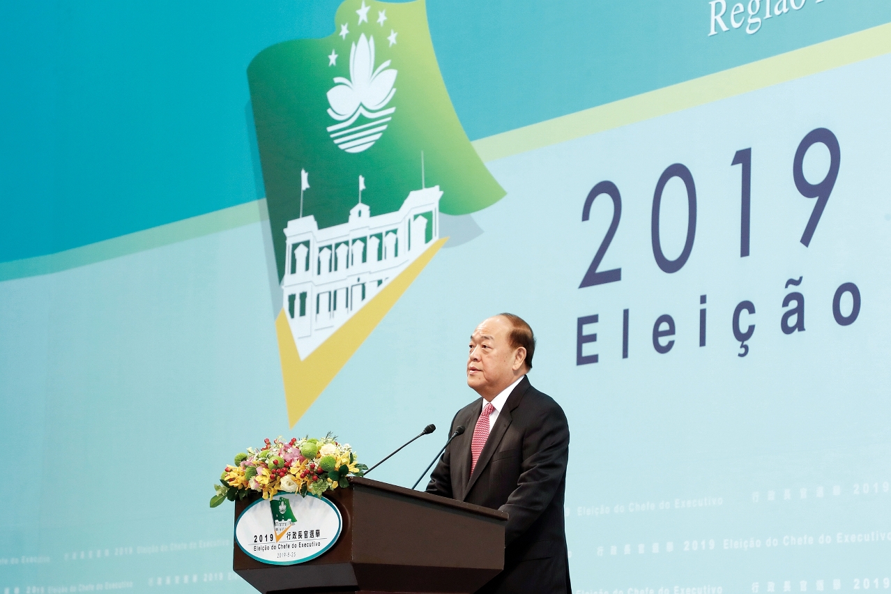 注:2019年8月25日举行了澳门特别行政区第五任行政长官选举。鉴于在法定期限内没有提起司法上诉,终审法院根据经第12/2008号法律、第11/2012号法律和第13/2018号法律修改的第3/2004号法律通过的《行政长官选举法》第九十五条第二款规定,确认选举的总核算结果,并宣布当选的候选人。