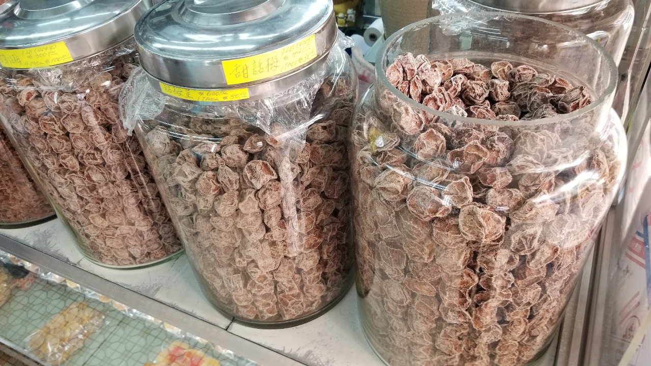 凉果的原材料基本上全是果子:梅子、杏子、李子、枇杷、葡萄、黄皮、龙眼、荔枝、无花果、杨桃、三稔(杨桃)、草莓、水蜜桃、金桔、橄榄、油柑子、山桔、柚子、山楂、芒果、菠萝、柠檬、柑皮(陈皮)……还有蔬菜类的姜、佛手瓜等等。
