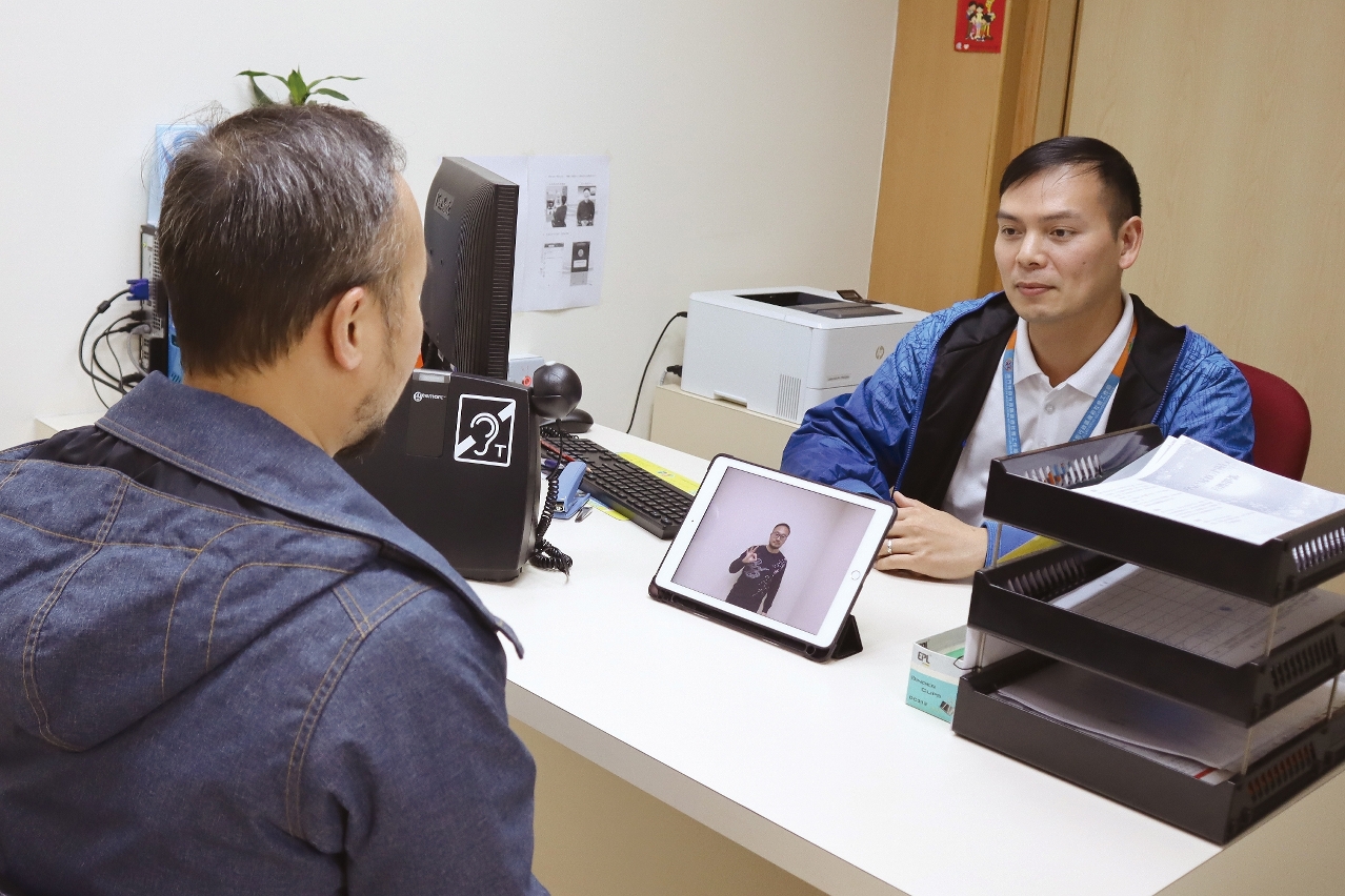 此外,社工局还与澳门聋人协会合作推出「视像手语翻译服务」,有关服务由手语翻译员透过移动装置内的视像软件,为社工局前线人员和聋人与听障人士提供即时口语和手语翻译服务。苏志群说:「这项服务除了便利聋人与听障人士外,亦有助提高手语翻译服务资源的运用效率,节省了手语翻译员的交通及等候时间,让既有的资源能服务更多有需要人士,有关服务项目现正逐渐推广至其他政府部门。」