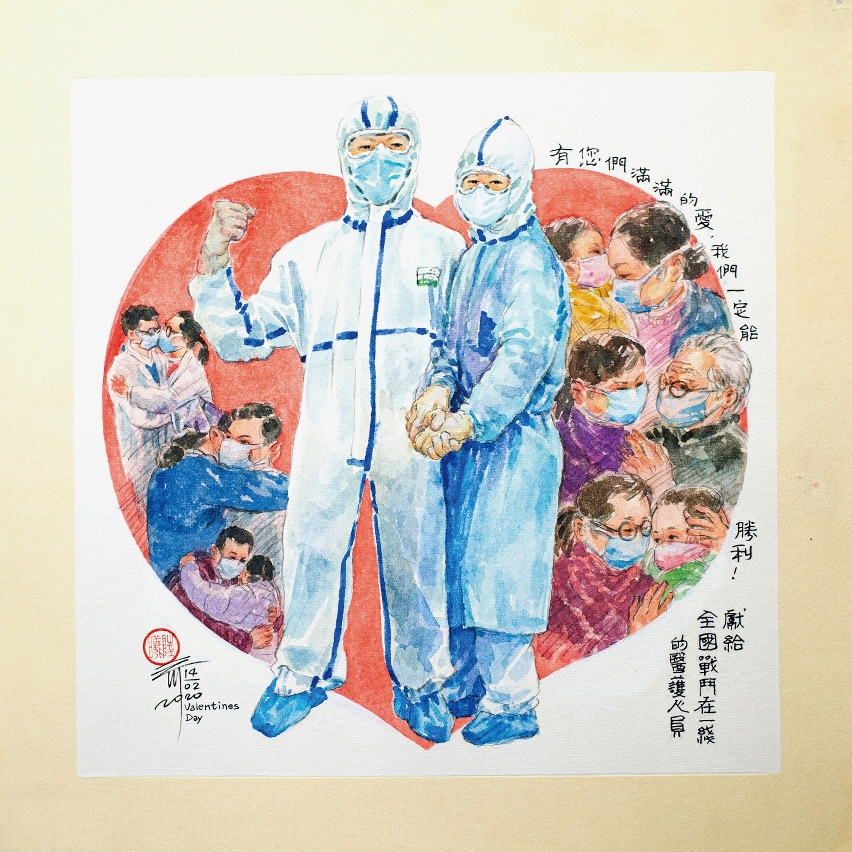自新型冠状病毒肺炎爆发以来,社会各界积极配合特区政府的防控工作。为感谢澳门以及内地抗疫前线人员的无私奉献,澳门美术家协会联同澳门美术协会、颐园书画会、书法篆刻协会、水墨艺术学会等澳门美术界团体,心手相牵,征集了120多位艺术家,近250件不同形式作品,以艺术形式讴歌国家及澳门抗击疫情中的英雄事迹。