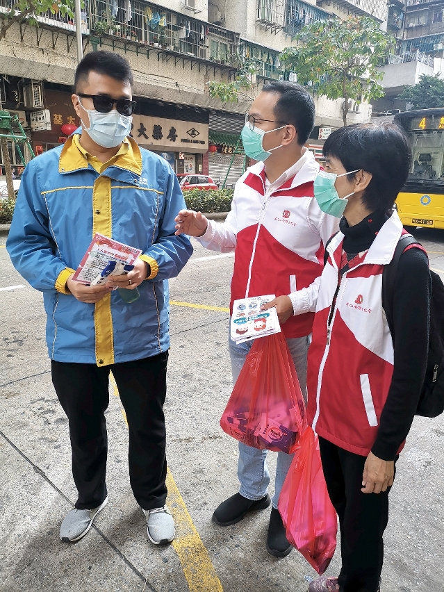 随着政府推出口罩供应计划,澳门市民可到各售卖点购买口罩,但不少长者难以支撑长时间的轮购过程,为此,街总特别上门帮助行动不便的长者,其辖下9个服务点亦协助政府售卖口罩,减少长者的轮候时间和群聚带来的风险。另外,街总亦对物资短缺的长者家户,分发由热心企业捐赠的新鲜蔬菜和消毒用品,让弱势群体在逆境中感受到温暖的关怀。