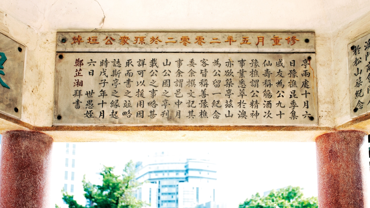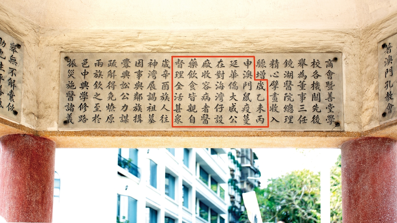 亭中有文记述1895年澳门发生鼠疫期间,华商捐资出力协助抗疫的贡献。今天读之,更有意义。