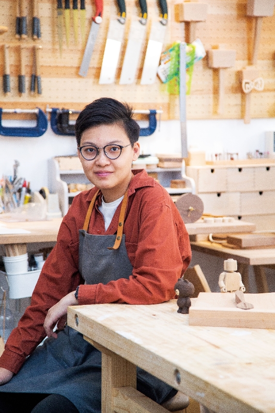 回忆起当初与木头结缘的那次上海旅行,当时Adeline翻看杂志,见到有小型的木工体验课,心想在旅途中如果有一件自己亲手制作的东西,将是一次难忘有趣的经历,于是便报名参加。「第一次是制作小狗木灯,眼看着一块四四方方的木头,经过亲手制作,最后到亮灯的那一刻,感觉非常满足。过程中看着木屑飞落,也有精神疗愈以及放松情绪的效果。」就此,Adeline对木工的喜爱便一发不可收拾。「其他人可能用音乐、运动、画画让自己放松下来,现在我是用木头来放松心情。」