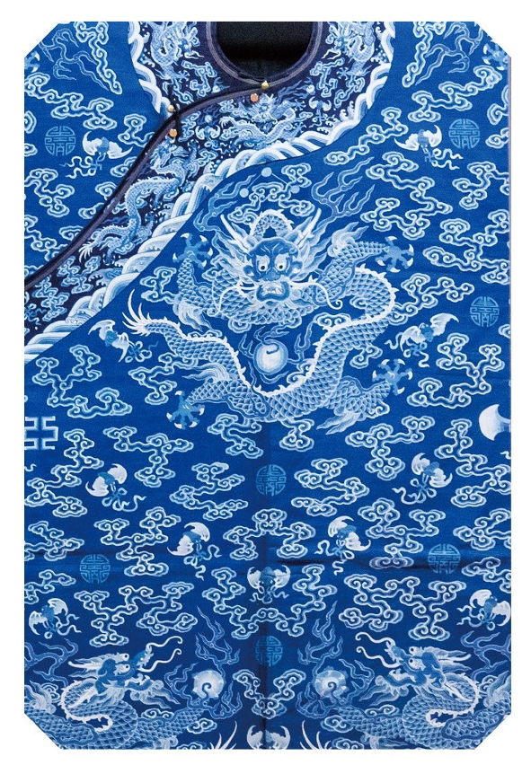 绘绣有章纹的礼服称为“章服”,帝王以下,公卿诸侯品官大臣依等级可用九章、七章、五章、三章不等。章新称,十二章纹是满族统治者汉化以及民族融合的表现,清代服饰中完整的十二章纹最早见于乾隆。在历朝历代中,把十二章纹应用于服饰上并不罕见,其代表皇帝政治权威的至高无上,更寓意君主的各种美好高尚品德能福泽百姓,体现冠服制度与儒家思想的融合。