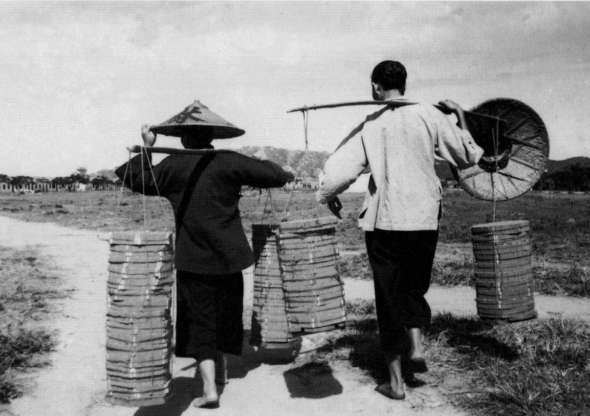 我与哥哥都参与了搓炮的工作,交收时,将炮壳分放于两个箩筐,轮流肩挑,翻过柿山到俾利喇街的工厂去。