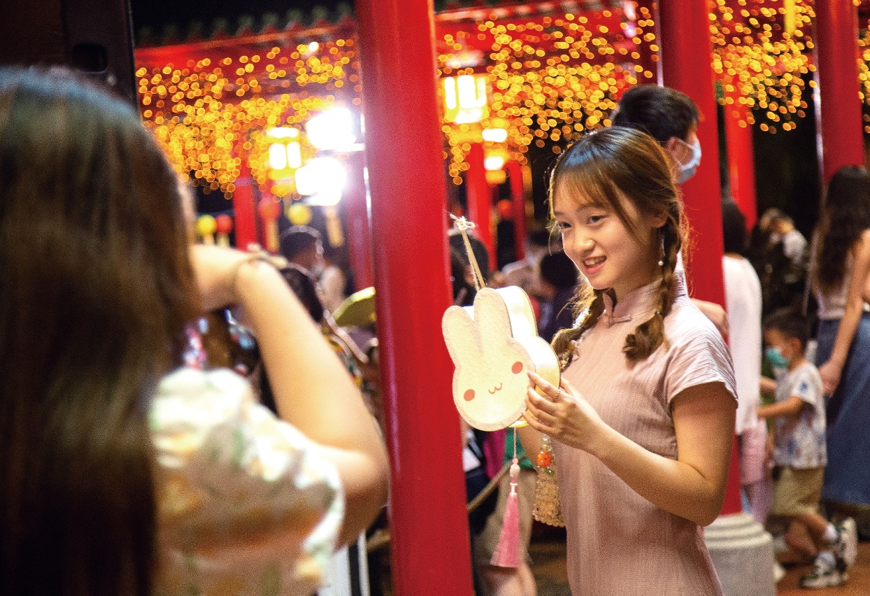 古色古香的卢廉若公园,挂上传统灯笼及灯谜,为中秋节日添喜庆。