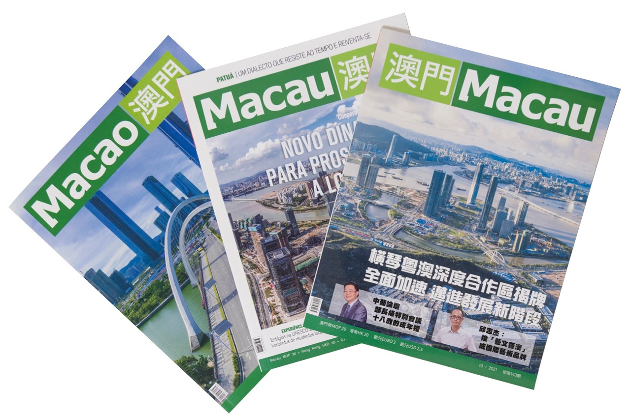《澳门》杂志,也是出版处固定的产品之一,谢永平介绍,《澳门》杂志一方面配合特区政府施政重点,向读者深入介绍各政策和措拖,同时,透过多元化和趣味性,向澳门、内地和世界各地的读者,介绍澳门最新发展和社会生活的不同方面。除中文版外,《澳门》杂志还出版葡、英文版本,各版本内容独立制作,面向不同地区、不同语言的读者群,务求做到内容「贴身」、「贴心」、「贴地」。