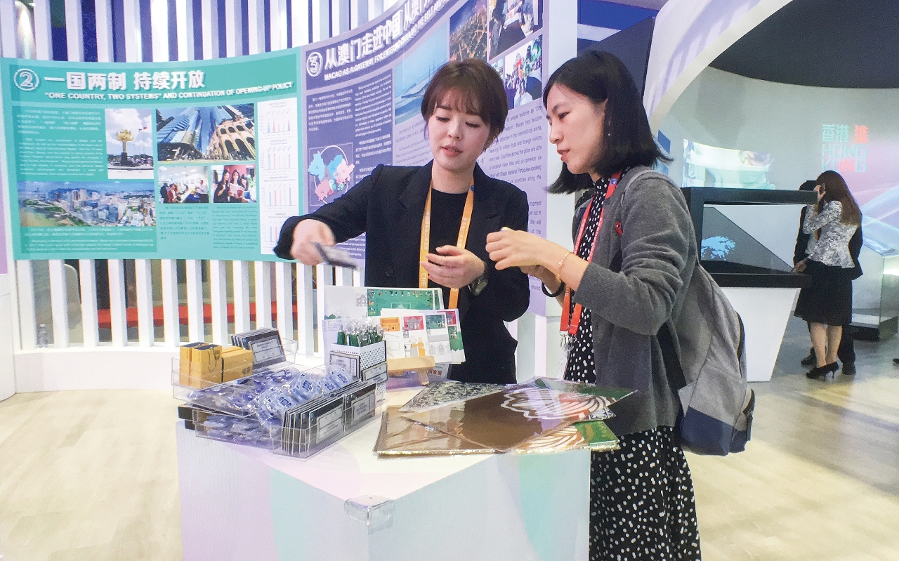推广主任的工作相当多元化,由策划推广项目、筹办实体展览、制作宣传品,以至和境外媒体合作推广澳门等等,与日常发布讯息相比,向外推广的工作更偏向综合讯息的整理,让初次接触澳门的人士,概括掌握相关主题的发展脉络。以展览为例,推广主任周芷盈忆述,2018年及2019年,新闻局先后参加了第一届及第二届「中国国际进口博览会」,负责跟进国家展中「中国馆」内澳门展区的策展和布展工作。能够参与国际级展览,是相当难得的经验。她说,筹办展览的难处,除了因应展览主题,组织内容,突出特区发展最新方向外,还要思考如何吸引观众停下脚步参观。「以第二届进博会澳门展区为例,我们在126平方米的展区内,使用了互动投影、触摸屏、LED墙、VR体验、实用识别双面屏等7组多媒体装置,务求让观众有新鲜和丰富的观赏体验。」