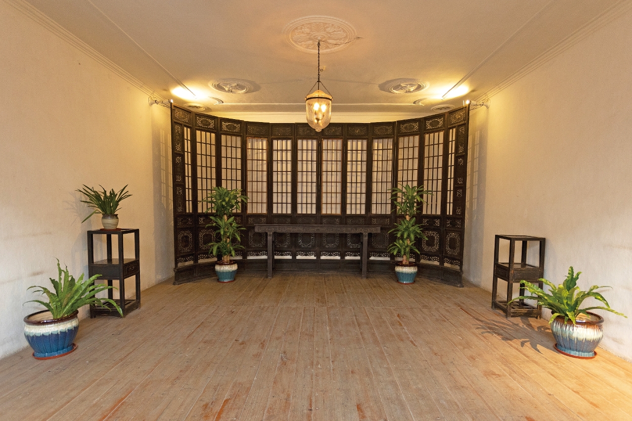 积善堂的厅堂气派明显不及余庆堂,以显示主次之别。该厅堂只有一开间宽,然而,设有凹槽状西式假天花,有别于传统设计。