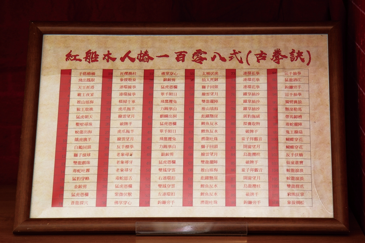 他说,红船木人桩的一百零八式口诀,结合了中国历史、人物典故、神话传说、拳法招式而成,充满中华传统民俗文化特色。由于红船木人桩源自粤剧南派武功,因此套路不乏港澳戏班常称的「小念头」(或「小练头」)、「云手拉山」及「腰马合一」等名堂。