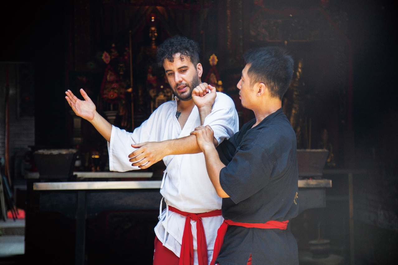 「『猛虎朝天』!在红船木人桩的一百零八式中,我最喜欢这一个招式。」来自葡萄牙的João Picanço,对澳门的本土文化兴趣浓厚,但找不到让他全情投入的切入点,一年半前,在葡萄牙朋友的推荐下,他开始学习咏春拳及红船木人桩。「这既可强身健体,亦让我加深瞭解澳门的本土文化,两全其美!」