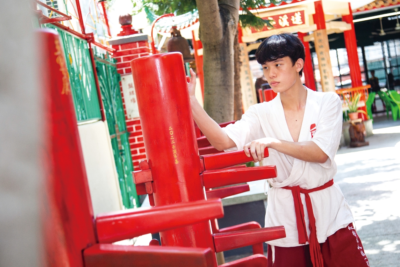 曾练习柔道的郑钧炜,在机缘巧合下接触了红船木人桩,并产生兴趣,于是开始有系统地学习。「在练习的过程中,我时常思考应如何施展或拆解招式,让我有种数学解题的快感。」他说,在方寸之地锻炼看似简单,其实不然,即使已有一定体能基础的他,开始练习时仍感到吃力。不过,努力并没有白费,现在的他,在精神和体能上都有所进步。