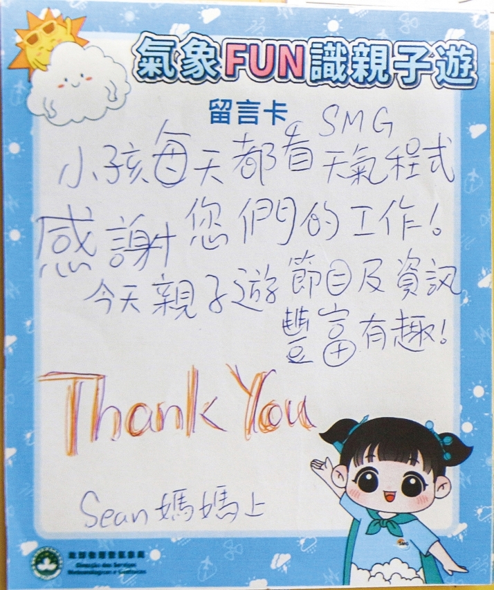 亲子游活动把深奥的气象知识寓教于乐,激发了大小朋友对气象科学和自然奥秘的兴趣。在活动的过程中,小朋友对台风知识最感兴趣。在「悬挂风球」的体验环节,小朋友一边把风球信号悬挂到挂杆上,一边听着气象人员讲解风球的历史,加深对风球的认识;而小小天气预报员的台风直播体验,小朋友则可一尝气象人员直播时的紧张滋味,为家长和小朋友留下难忘的体验时刻。「当学习的场所跳出班房,艰深晦涩的知识会变得有趣味,小朋友的求知欲就会被激发。亲子游活动正是以情境学习的方式,把气象知识传递给大家。」
