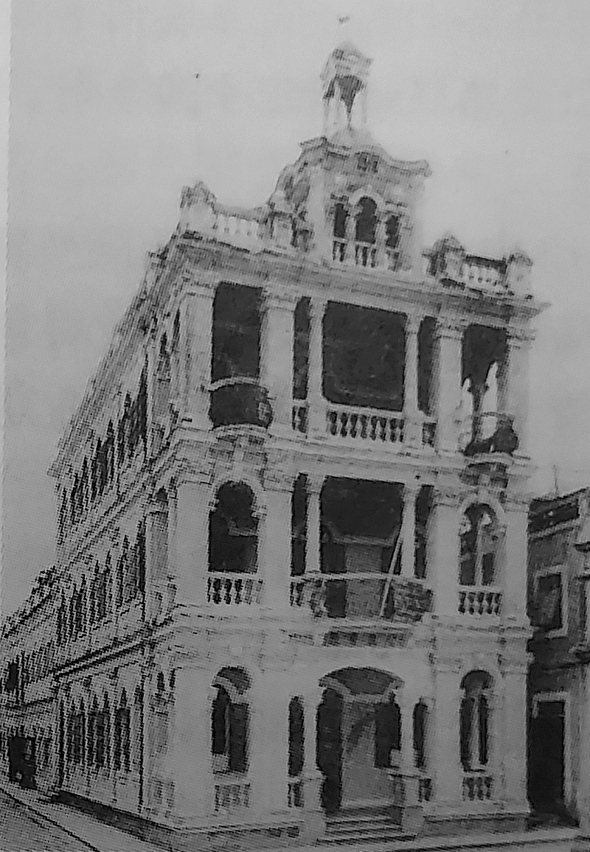 从石碑可以推断,该楼房于1923年落成,而楼顶塔楼的「1918年」,可能是始建年份。在整个工程中,崔诺枝负责了全座的石脚,陈永赐负责全部木料,而刘公裕负责画则及监工。至于「政府补回旧书馆」所指的「书馆」曾否在该处,有待研究。