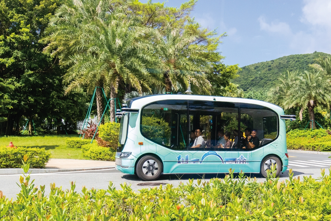 内地无人驾驶汽车的发展已进入应用阶段,目前,横琴已开放两条无人驾驶巴士免费体验路线:第一条路线从花海长廊1号驿站到5号驿站;第二条路线从横琴口岸到长隆海洋王国度假区。大横琴科技发展有限公司智慧事业部总监刘俊向媒体团介绍,为给游客带来更好的观光体验,无人驾驶巴士采用大天窗和无遮挡全外景设计,已接待游客约3,500人次。