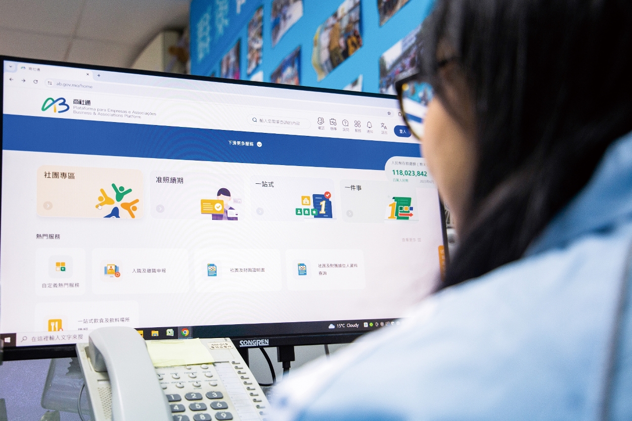 为回应企业及社团的电子化服务诉求,特区政府于今年1月推出了全新的「商社通」服务平台,提供从设立、营运到发展所需的电子化公共服务,并设有四大专区:「社团专区」、「准照续期服务」、「一站式」、「一件事」,方便企业和社团办理综合政务。「商社通」服务推出后,作为「社团专区」目标之一的澳门街坊会联合总会,积极响应和踊跃使用有关服务,并称赞「商社通」能减轻社团的行政负担,有助提升工作效率。