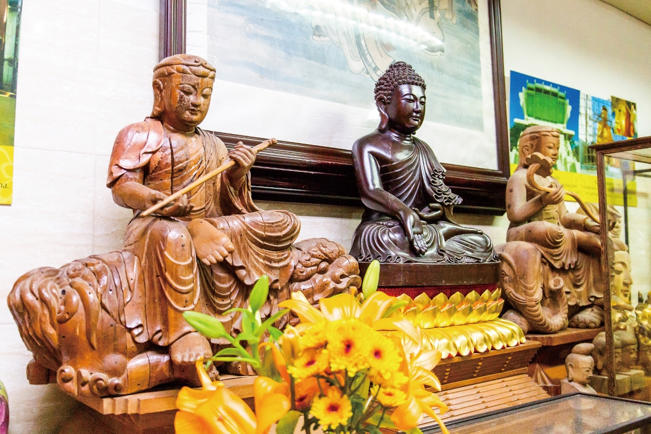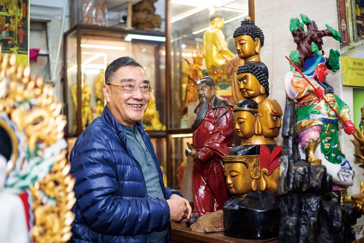 「大昌佛像雕刻木器」作为三代澳门老字号,从老一辈以制作民间信仰和神像为主,到曾德衡、曾德荣这一代,以孜孜不倦、敢于创新的思维前往不同地方学习,专心钻研,摸索转型方向,打下一片属于自己的天空。为进一步拓展业务,他们考究过不同地方的工艺,以宗教雕像为市场目标,为大大小小的庙宇提供雕像制作、修复服务。「上一代是打开门口等生意,我觉得这样有些被动,始终客源有限,于是我们便聘请师傅,主动走出去接洽。事实上,我们早期也很艰难,拿着样板奔走四方,从以前用斧头刀凿做小雕像,到用电钻、电锯做大佛,一步一步慢慢走到今天。」