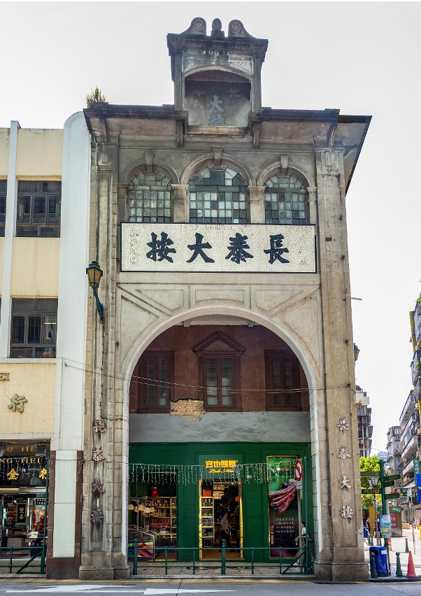 在新中央酒店对面是已结业多年的长泰大按,建筑物沿新马路立面亦是折衷风格式样。