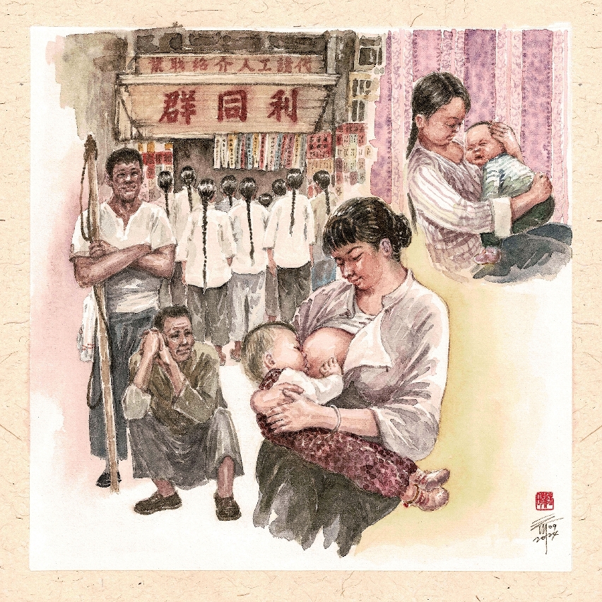 1950年代末,笔者有一位乡亲,夫妇俩胼手胝足经营街边面檔维生,头两胎子女都是自己哺乳,到第三胎,实在无法兼顾,就请了个乳母。三子由奶妈带大到上小学才回到亲母家。此后,两家保持紧密关系,时相来往,到如今已延续到第三代,仍如一家人。