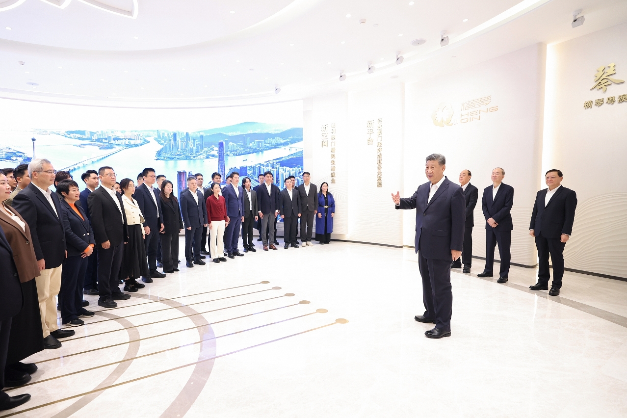 习近平同参与横琴粤澳深度合作区规划、建设、管理、服务等各方面代表亲切交流。他说,「澳门+横琴」正在成为丰富「一国两制」实践的新示范、推动粤港澳大湾区建设的新高地、实现国家高水平对外开放的新平台。你们是横琴建设的先行者、实干家,为国家和澳门发展作出了贡献。