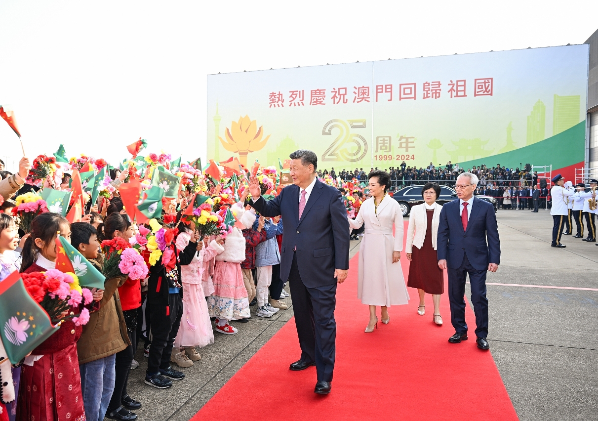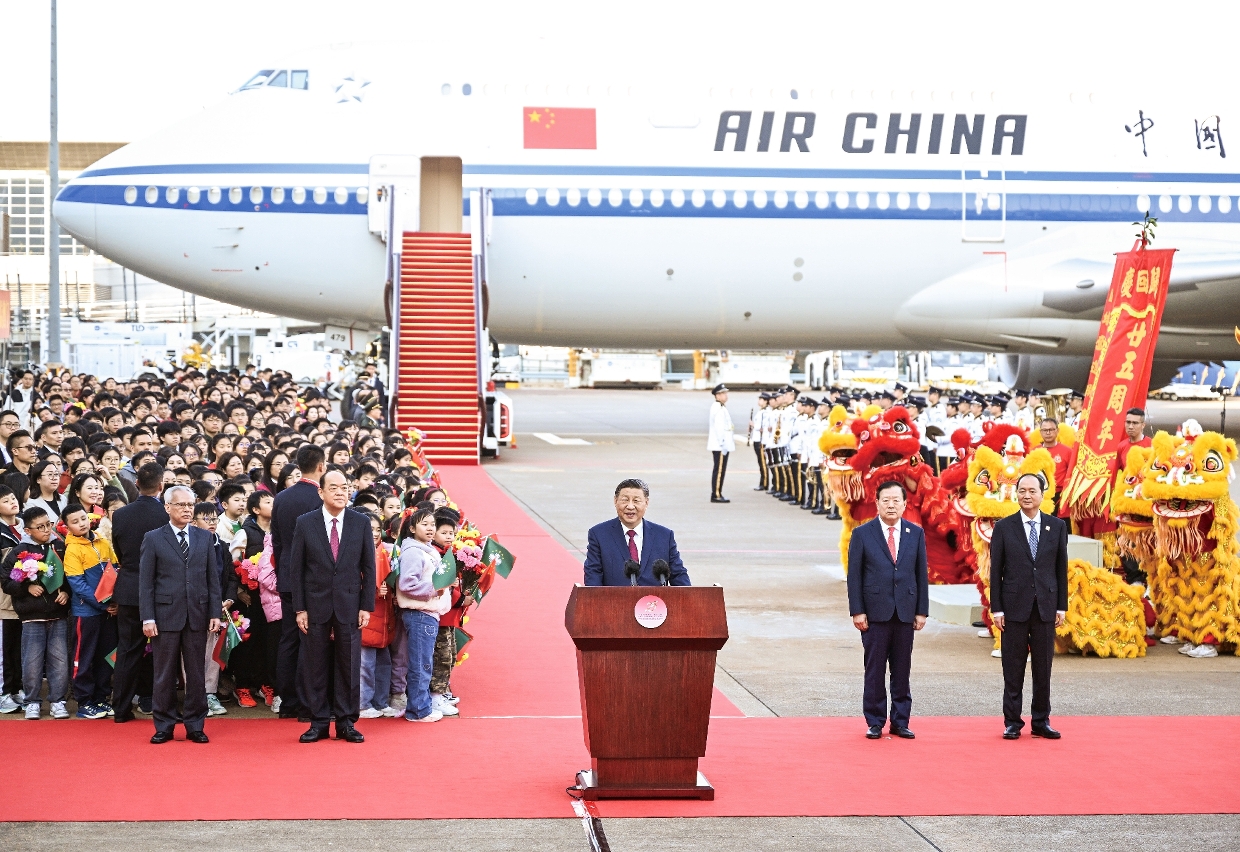 中共中央总书记、国家主席、中央军委主席习近平于2024年12月18日下午乘专机抵达澳门,出席庆祝澳门回归祖国25周年大会暨澳门特别行政区第六届政府就职典礼并视察澳门。习近平在机场发表简短讲话表示,每次来到美丽的澳门,都感到十分高兴。他指出,澳门具特色的「一国两制」实践取得了举世公认的成功,展现出勃勃生机和独特魅力。国家的发展日新月异、势不可挡,澳门的发展厚积薄发,未来可期。