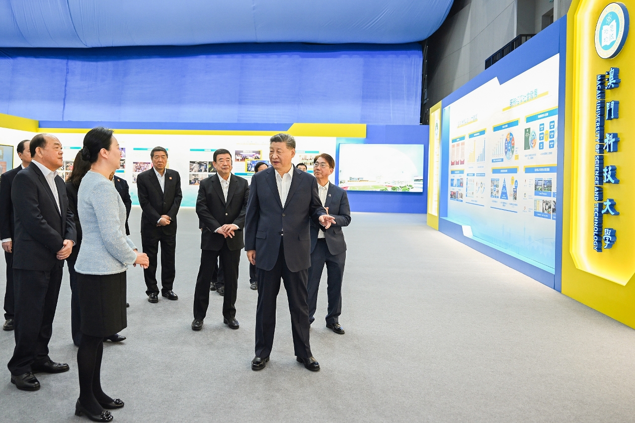 12月19日上午,习近平主席到澳门科技大学考察,先来到综合教学大楼详细瞭解学校和澳门高等教育发展情况,对澳门坚持教育服务经济社会发展,推进「教育兴澳、人才建澳」的成绩表示肯定。