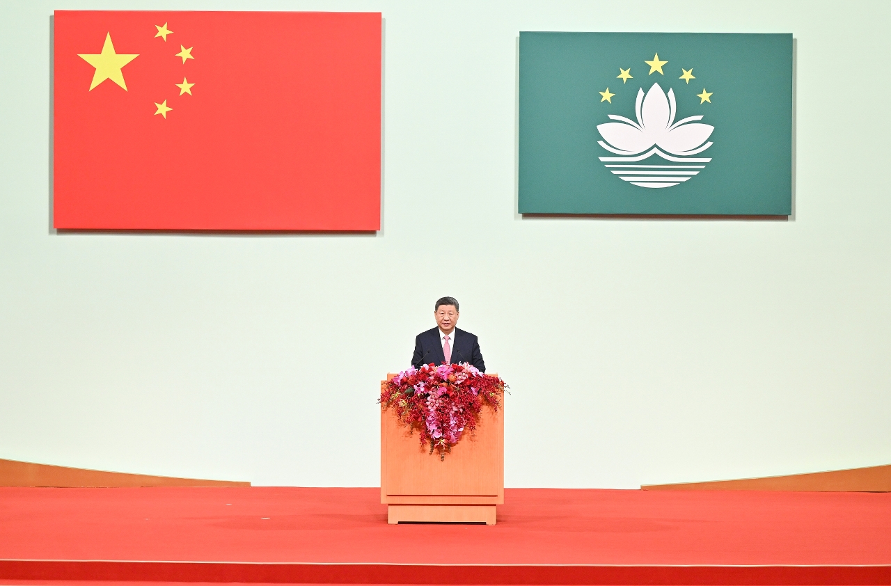 习近平指出,25年来,具有澳门特色的「一国两制」实践取得了举世公认的成功,展现出勃勃生机和独特魅力。国家的发展日新月异、势不可挡,澳门的发展厚积薄发,未来可期。这是澳门居民的光荣,也是全国人民的骄傲。只要充分发挥「一国两制」的制度优势,敢于拼搏、勇于创新,澳门一定能创造更加美好的明天。