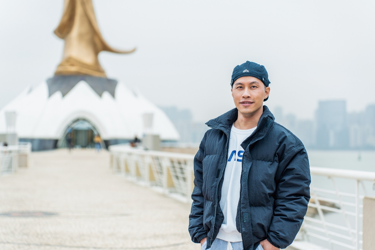来自泰国的旅客Chanya(图左)在观音像前双手合十,闭目祈福。她说:「泰国的观音像多为白色且小巧,而这里的观音像金光熠熠,格外庄严。得知它由葡萄牙设计师创作,却呈现东方宗教形象,我感到惊喜,这种文化碰撞很奇妙。澳门的包容性让我印象深刻,无论来自何地、何种信仰的人,都能在这里找到心灵的归属。我很喜欢这种氛围,期待未来再访,探索更多澳门的文化魅力。」