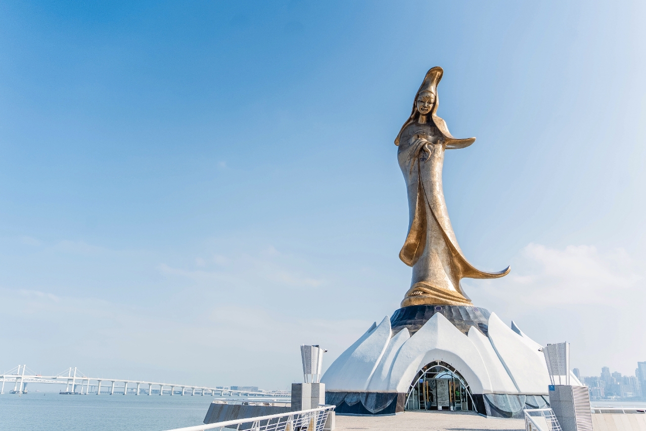 矗立于澳门皇朝区人工小岛上的观音莲花苑,自1999年落成以来,慈目低垂的观音像静静俯瞰濠江,见证澳门在回归后的蜕变。这座端立于莲台之上的庄严雕塑,承载深厚的文化意涵。为延续其使命,文化局近年启动修复工程,并于2024年12月11日重新开放。洗去岁月尘埃后,观音莲花苑焕然一新,不仅保留灵性之美,更融入艺术与文旅体验,化身多功能空间,引领访客穿梭,探寻「世界大同」的深层哲思。