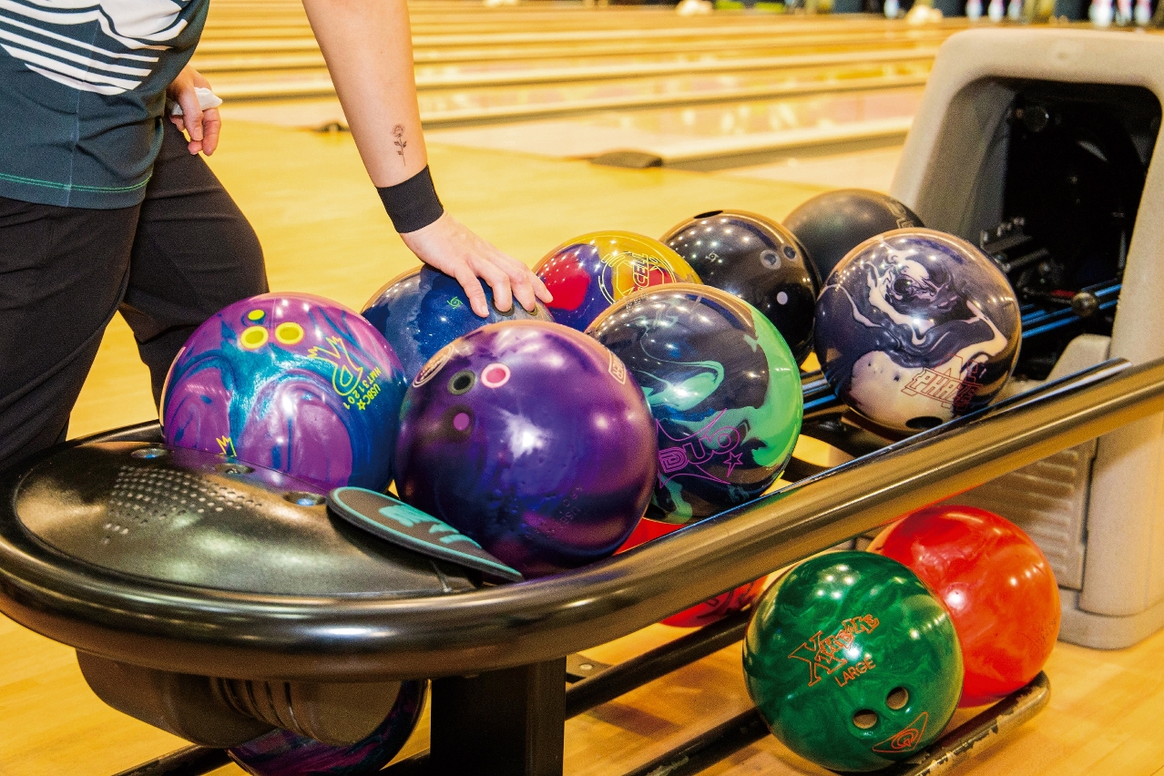 保龄球的重量,同样讲究。男队员通常使用15磅球,女队员则选14磅球。「一支球瓶约重10盎司。透过保龄球的重量和配合正手打法,能有效提高全中机率。」姚文友补充,投球步伐的掌握亦是关键,这是「借力」的过程,在掌握窍门后,既能减轻球的重量感,又能提升投球质量。