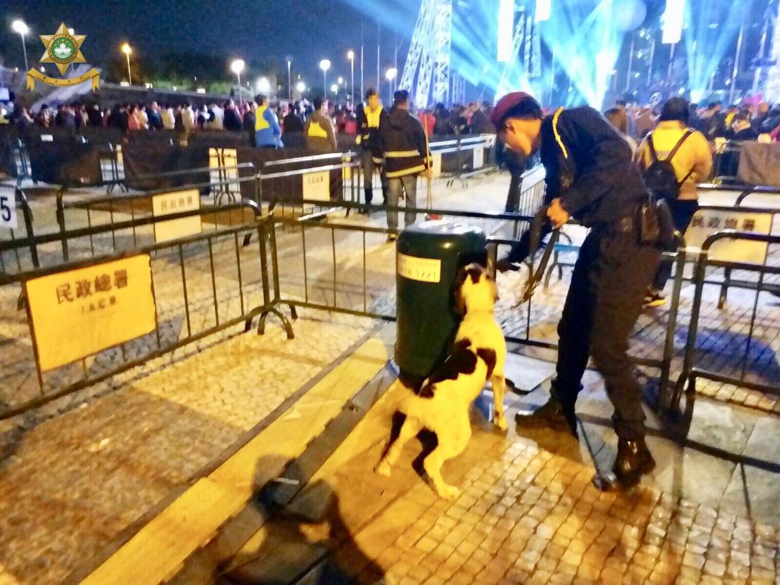 除夕夜本澳各区都有不同的倒数活动吸引大量巿民和旅客参与,治安警察局亦加派警力于各活动场地内外执勤,包括派出警犬队于活动开始前进行危险品的搜查、派员维持人流和车流的秩序等,加上巿民和旅客的配合,除夕夜的各项活动都在欢欣和有序之下圆满结束。