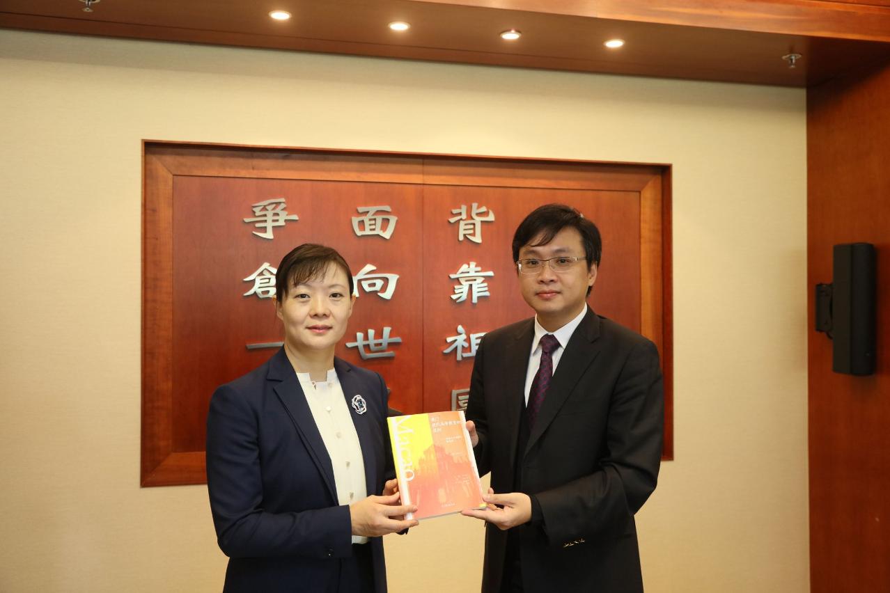 张宝娟表示,此行主要带领扬州市代表团莅澳参与由驻澳外交公署主办﹑与澳门基金会和理工学院合办的“迎新年文艺晚会”,对到访理工学院的周到安排和热情接待表示感谢。通过实地考察,代表团一行对理工学院持续推动和优化自身的建设发展印象深刻。张宝娟指出,澳门有着中葡文化悠久的历史渊源,也是中葡文化友好交流最好的桥梁,而扬州作为具有二千五百年历史的文化名城,传统文化底薀深厚,随着与澳门之间的交往愈来愈密切,相信两地在文化等领域有很大的合作前景,希望与理工学院就高等教育的人才培养、师生交流,以至行政管理、干部培训等方面开展更多互动交流和合作。