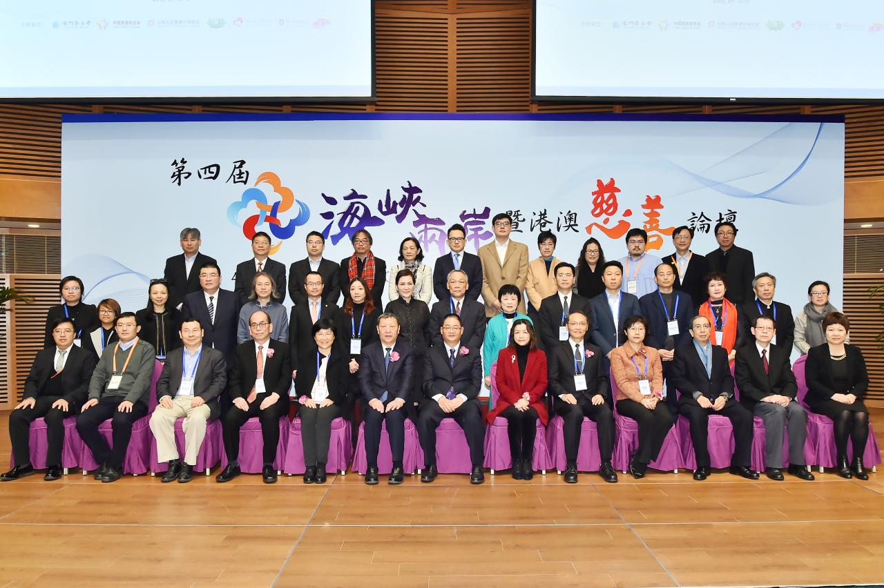 第四届“海峡两岸暨港澳慈善论坛"于2018年1月15日至17日在澳门科学馆会议厅隆重举行。该论坛由中国慈善联合会、澳门基金会、台湾公益团体自律联盟、台湾佛教慈济慈善事业基金会、爱家文化事业基金会和香港大学社会科学学院联合主办,并获顶新公益基金会支持。一连三天的论坛共邀请了来自中国内地、香港、澳门和台湾地区近二百位知名专家学者、公益慈善机构负责人、爱心企业领导等慈善界代表参与,一同就“协作、创新与专业服务”主题作重点探讨。