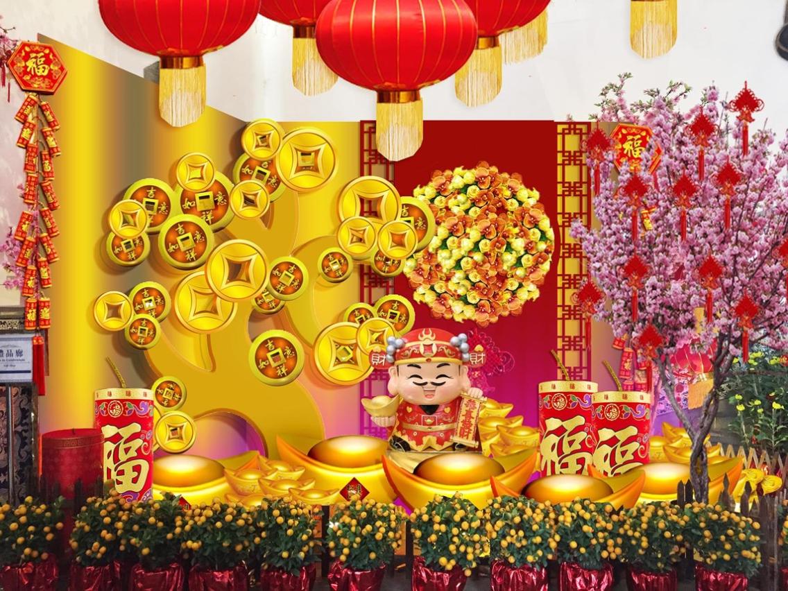 另外,民署大楼亦有充满农历新年气氛的灯饰布置,大堂以金钱树造型为主,配以金元宝、牡丹及桃花装饰,顶部挂有炮仗串及红灯笼,并于礼堂门口位置悬挂一个以花卉堆砌而成的如意结,寓意新一年“事事如意、吉祥平安"。大楼的花园内则装置以金钱桃花树及金犬造型为主体的立体花坛,配合圆形的万字花纹屏风作点缀。整体设计均以圆形的图案为主轴,象征“团圆、圆满"的意思;金犬造型布置,则寓意祝愿全澳市民“福犬献瑞,旺旺报喜"。
