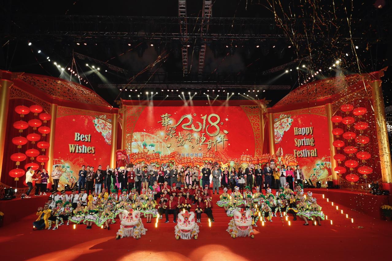 “华丽盛宴旺财年狗年花车巡游汇演”大型贺岁活动于今(18日)晚与市民及旅客一同欢度新岁,精彩节目包括花车巡游、大型汇演、烟花表演、花车展览及手机游戏等。花车巡游汇演透过澳门两家电视台及设于8个地点的屏幕直播现场盛况,与全城齐腾欢、迎新春。