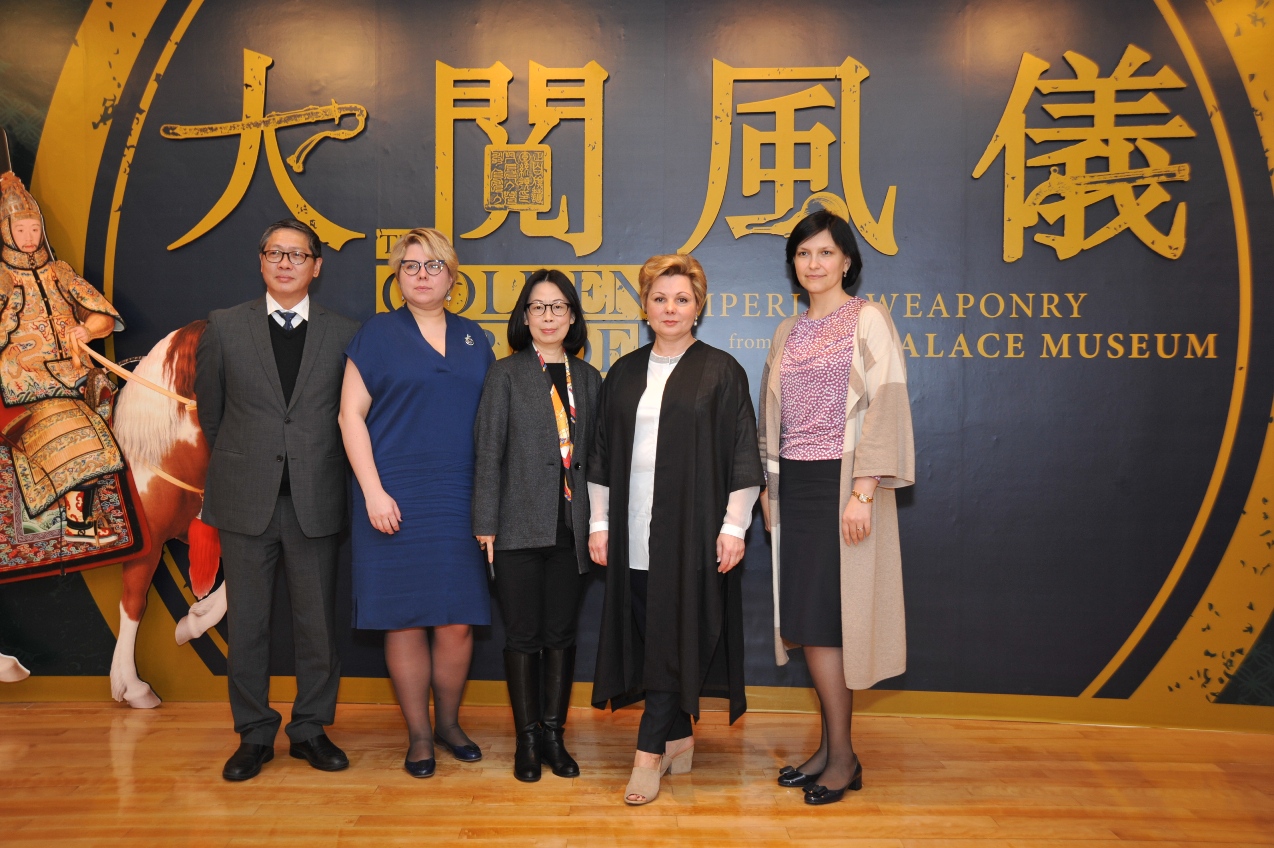 应文化局的邀请,俄罗斯莫斯科克里姆林宫博物馆(Moscow Kremlin Museums)总馆长伊琳娜•加加琳娜(Elena Yurievna Gagarina)及在国际和展览部主管叶卡捷琳娜•卡拉瓦耶娃(Ekaterina Karavaeva)及俄罗斯驻港澳副总领事妮娜•纳鲁特金诺娃(Nina Narutdinova)陪同下,于今(二月二十六日)日访问文化局辖下澳门艺术博物馆、澳门回归贺礼陈列馆及澳门博物馆,受到副局长杨子健、文博厅厅长李丽娇、澳门艺术博物馆馆长陈继春及澳门博物馆馆长吕志鹏热情接待。