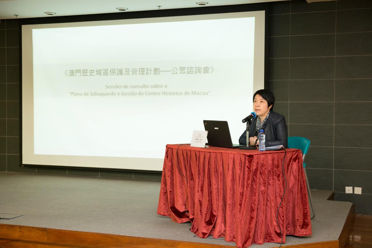 根据《文化遗产保护法》的规定,文化局现正就《澳门历史城区保护及管理计划》进行公开咨询。公开咨询期由一月二十日至三月二十日,为期六十天,期间举行四场公众咨询会。今日(三月十一日)在下环街市四楼的下环活动中心举行最后一场公众咨询会,由文化局代局长梁惠敏、文化遗产厅代厅长黄一翔、民政总署代表陈伟年、文化遗产厅研究及计划处代处长苏建明出席,向市民讲解文本内容。