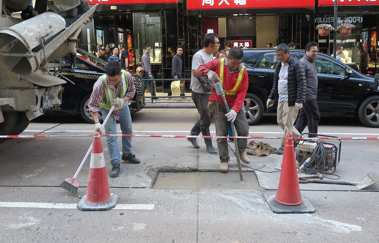 民署人员到现场,发现有关地点出现凹陷孔洞,经详细检查渠道后,发现有关路面的旧式石板渠石块之间的空隙出现轻微渗漏现象,同时混凝土路面伸缩缝有脱落的情况,雨水经由路面伸缩缝进入泥土,有机会造成水土流失,邻近路面亦出现轻微的水土流失现象,故评估出现是次路陷的原因与水土流失有关。