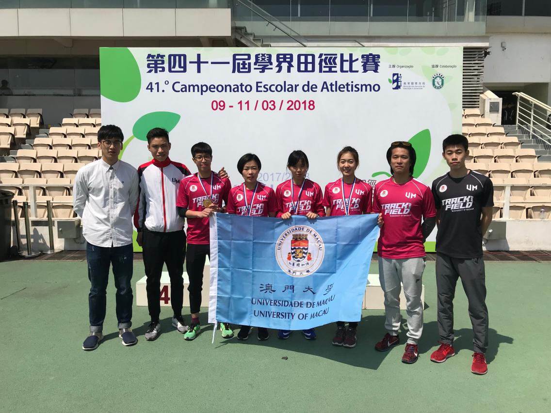 澳门大学田径队共派出17名运动员参加一连三日的“2017/2018年度全澳大学生田径锦标赛”,他们在比赛中全力冲刺、大放异彩,赢得7金 8 银7铜佳绩,总共获得22面奖牌。