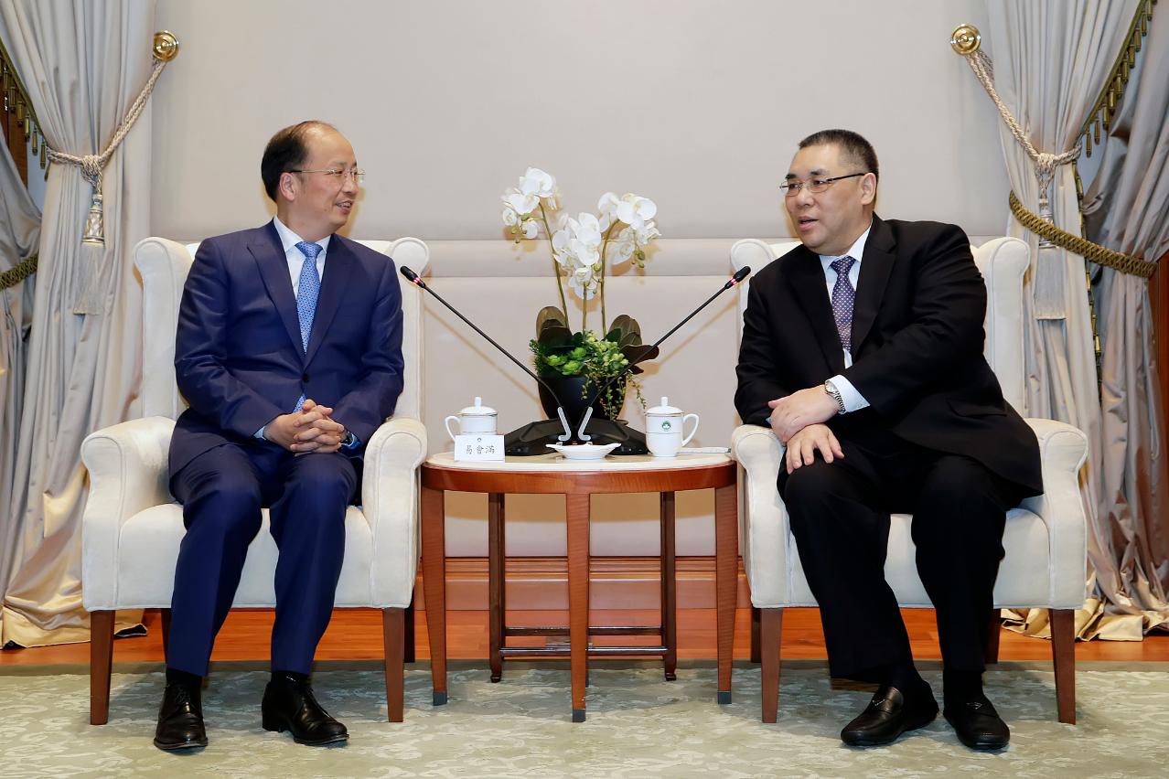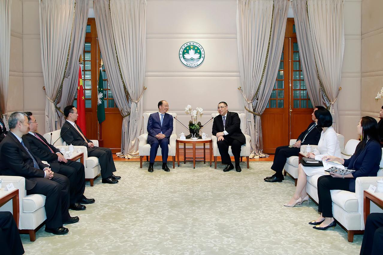 行政长官欢迎易会满董事长访问澳门,共同见证双方签署《关于支持澳门特色金融发展工作备忘录》。他表示,工商银行在澳门发展良好,是澳门社会的重要合作伙伴之一,希望该行继续为本澳居民提供优质服务,继续推动澳门金融发展、维护金融系统稳健和支持澳门可持续发展作出努力。他指出,发展特色金融是澳门经济适度多元和推动多元就业的新契机,尤其澳门加快建设“一中心一平台”不断进入新阶段,也获得中央支持融入区域合作,参与泛珠三角、长三角、粤港澳大湾区等的发展,以及助力“一带一路”建设,金融发展在当中占据重要比重,故特区政府会持续努力开拓,多作资源投入,善用葡语平台角色的有利条件,发展特色金融业务。