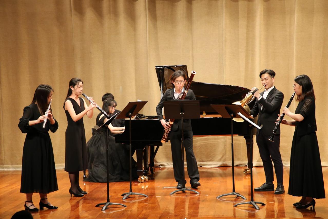理工“乐韵欢颂师生音乐会”节目丰富多彩,包括声乐独唱与重唱、器乐独奏与重奏等。这些节目均由同学报名,经过音乐课程教师评审选拔出演。其中的开场曲敲击乐队大合奏、中间的木管五重奏与钢琴、钢琴与弦乐重奏三个节目是由音乐课程各年级同学自愿组合的不同形式的小乐队演出,这些小乐队平时由校方提供排练场地和教师排练指导,曾多次参与学院各类重大活动以及音乐课程音乐会的表演。此次演出有三位教师参演,敲击乐队排练老师李畅亲率小乐队一起演奏自己改编的乐曲,奏响开场曲;同为美国辛辛那提音乐学院毕业的声乐表演博士王曦与钢琴演奏博士郭家豪两位青年教师可谓黄金搭檔,在压轴演出中技惊四座。