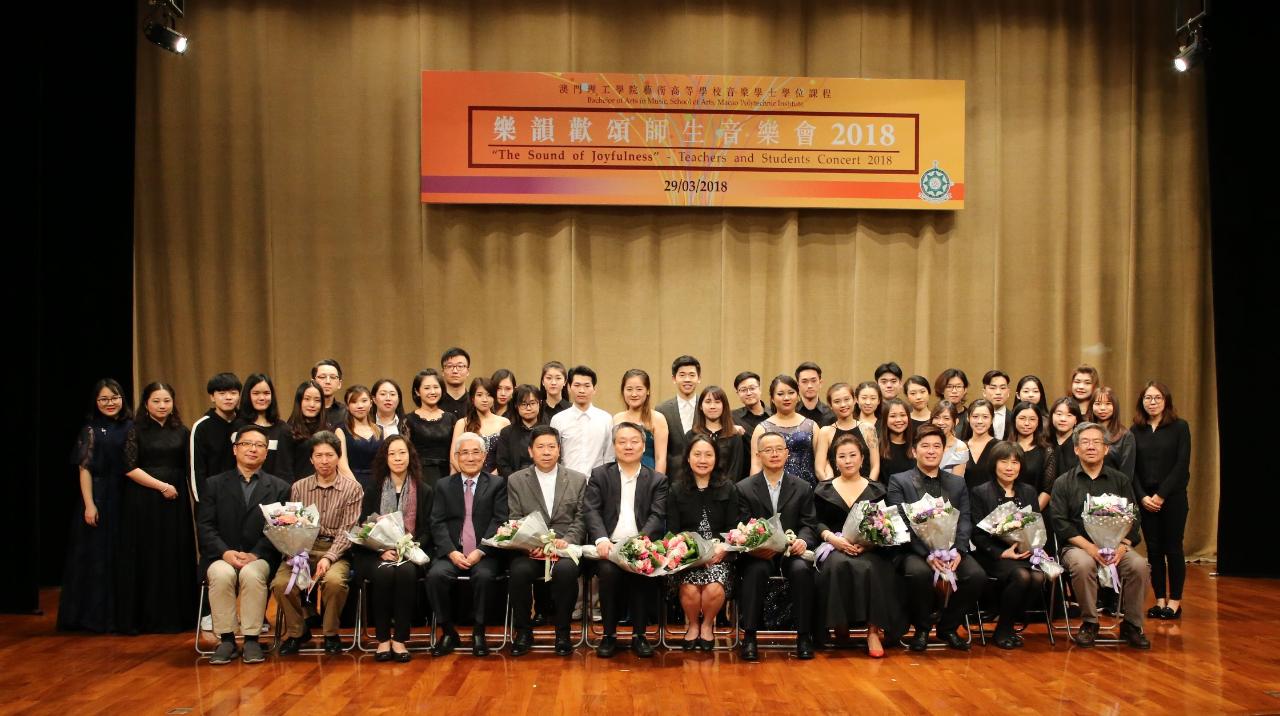 2018年3月29日晚,澳门理工学院艺术高等学校音乐课程2018年度 “乐韵欢颂师生音乐会” 在理工学院礼堂顺利举行。一年一度的师生音乐会是音乐课程的重要艺术实践活动,为学生展现艺术表演才华提供舞台,并有和表演专业教师同台演出学习的机会。本年度的师生音乐会同时也是 “第三届澳门理工学院艺术节” 的系列活动之一。